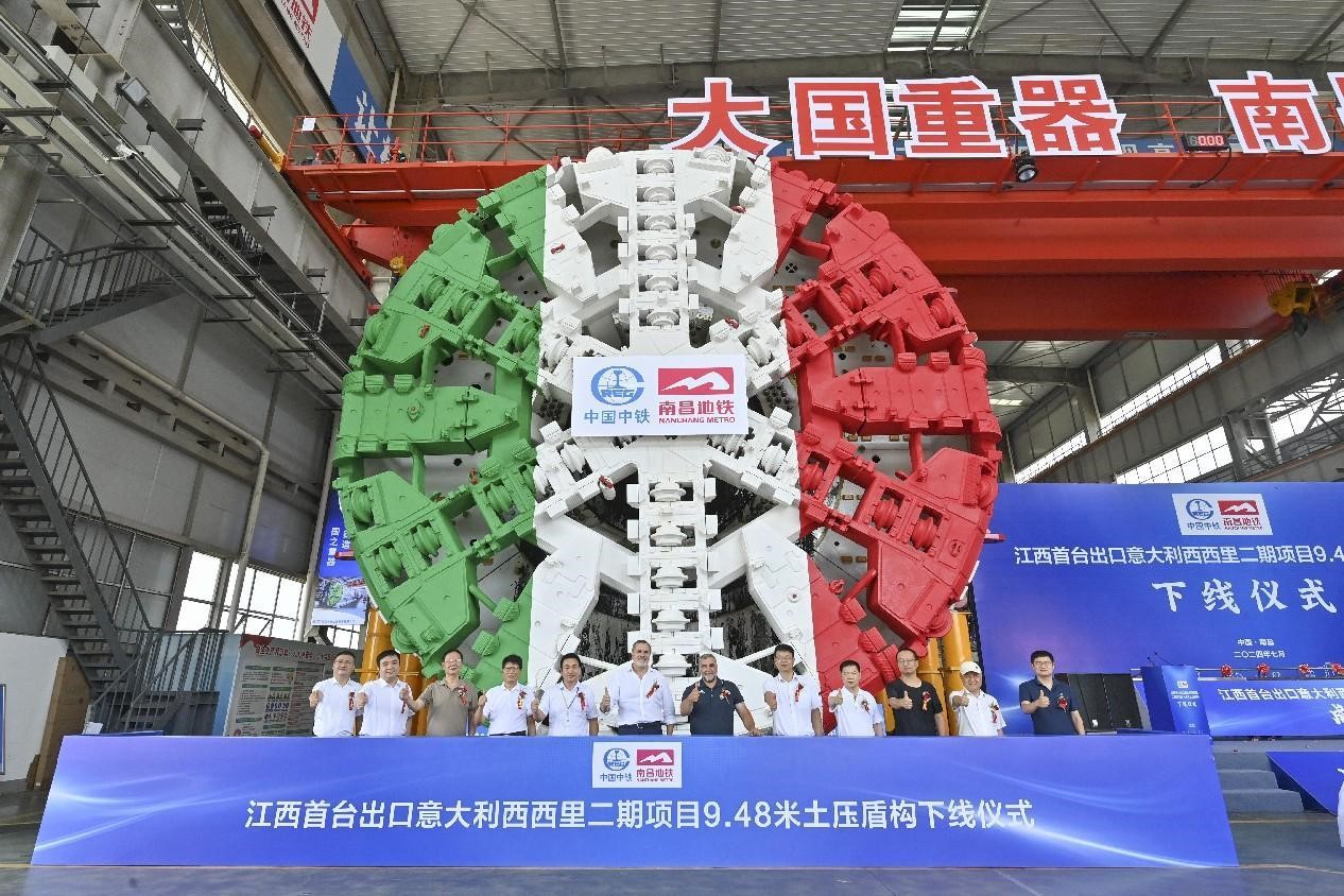 The first earth pressure shield machine for the second phase of an engineering project in Sicily, Italy, with an excavation diameter of 9.48 meters, rolls off the production line in Nanchang, east China's Jiangxi province, July 12, 2024. (People's Daily Online/Li Jie)