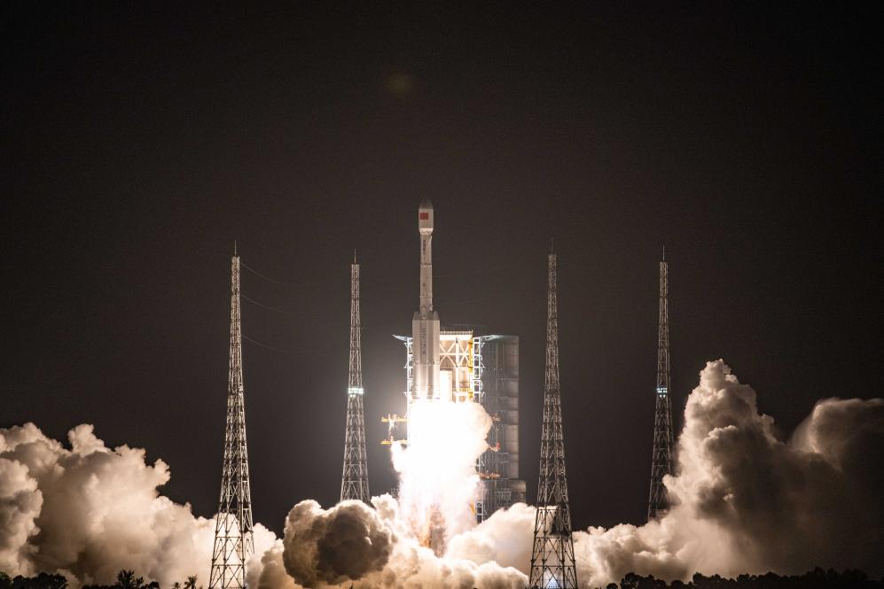 A modified Long March-7 carrier rocket carrying the ChinaSat 4A satellite blasts off from the Wenchang Space Launch Site on the coast of southern island province of Hainan, Aug. 22, 2024. (Photo by Du Xinxin/Xinhua)