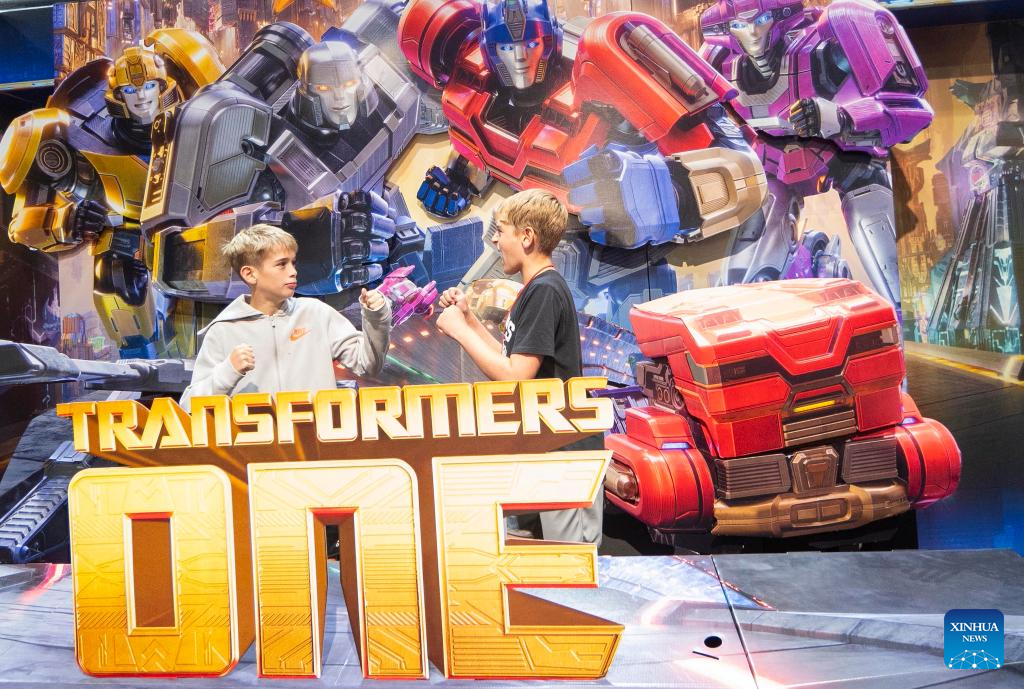 Boys pose for photos with models of the Transformers during the 2024 Fan Expo Canada in Toronto, Canada, on Aug. 23, 2024. As one of the largest comics, sci-fi, anime and gaming events in Canada, the annual show is held here from Aug. 22 to Aug. 25, attracting hundreds of thousands of fans from across the world. (Photo by Zou Zheng/Xinhua)