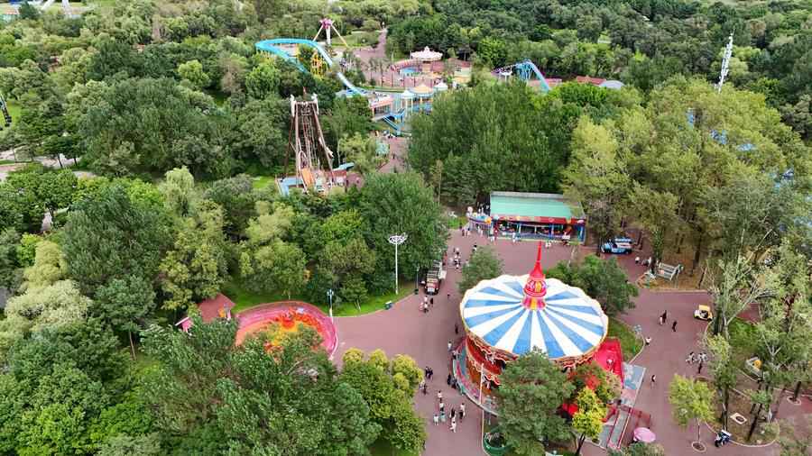 An aerial drone photo taken on Aug. 20, 2024 shows a view of Sun Island scenic spot in the Taiyangdao (Sun Island) National Wetland Park in Harbin, northeast China's Heilongjiang Province. (Xinhua/Wang Song)