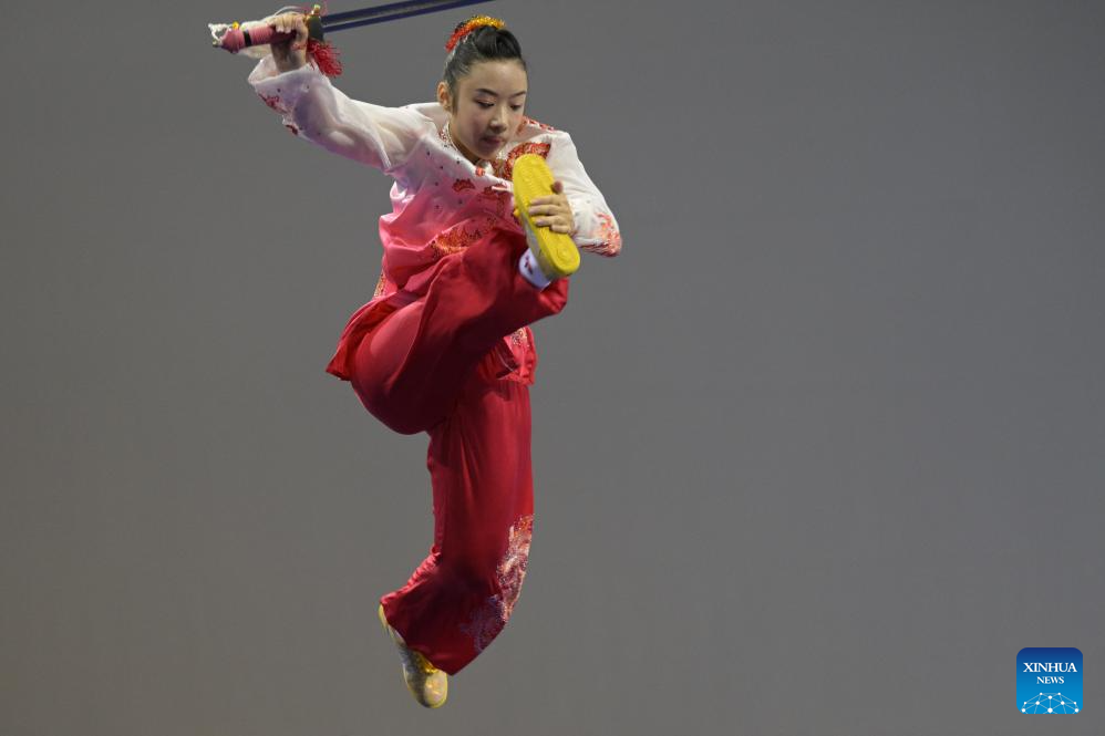Miranda Wei of Canada competes during the women's 3rd set IWUF Compulsory Taijijian (36 Movements) competition at the 4th World Taijiquan Championships in Singapore, Aug. 26, 2024. (Photo by Then Chih Wey/Xinhua)