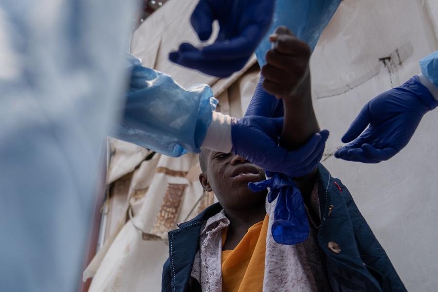 A boy caught mpox gets treatment at a hospital on the outskirts of Goma, North Kivu province, eastern Democratic Republic of the Congo (DRC), on Aug. 19, 2024. (Str/Xinhua)