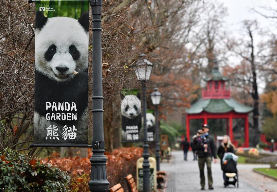 Posters of giant panda are pictured at Zoo Berlin in Berlin, Germany, Dec. 14, 2023. (Xinhua/Ren Pengfei)