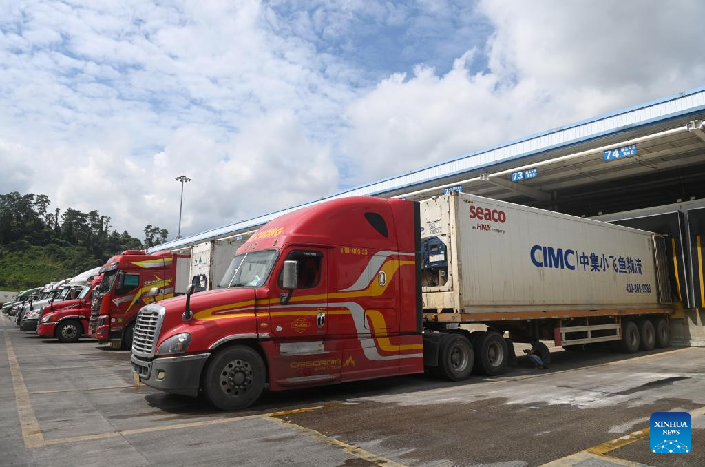 Vehicles carrying imported goods wait for quarantine check at Youyiguan Port in Pingxiang City, south China's Guangxi Zhuang Autonomous Region, Aug. 26, 2024. To fully avail of its unique geological position, Guangxi has scaled up the efforts to accelerate opening up and promote cross-border trade and international cooperation in recent years. (Xinhua/Lu Boan)