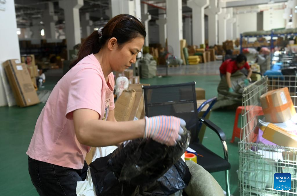 A staff member arranges parcels of cross-border e-commerce at a logistics company in Pingxiang City, south China's Guangxi Zhuang Autonomous Region, Aug. 26, 2024. To fully avail of its unique geological position, Guangxi has scaled up the efforts to accelerate opening up and promote cross-border trade and international cooperation in recent years. (Xinhua/Lu Boan)