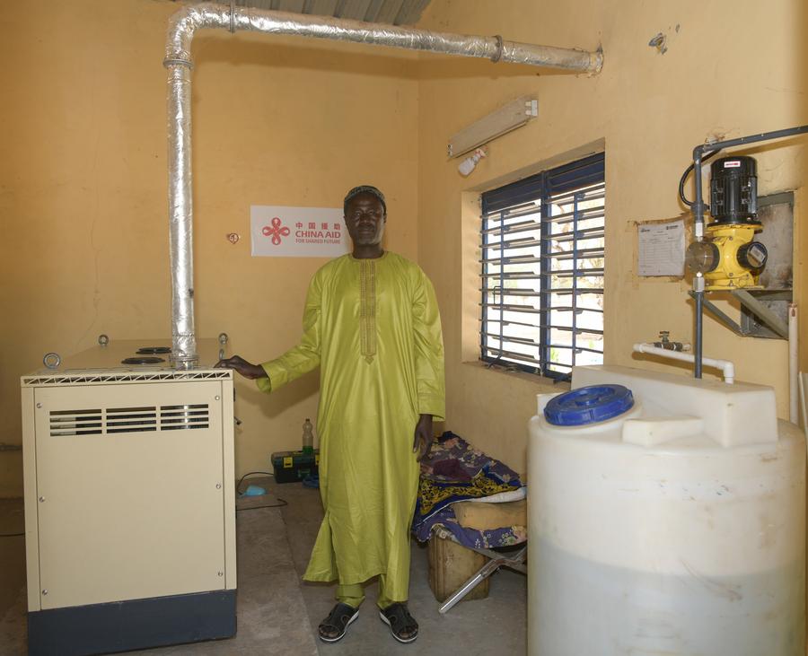 When the Chinese well-drilling team arrived at Tenefoul Toucouleur in 2018, Dieng joined the team as a well-driller. After it was completed, Dieng was hired as a coordinator responsible for the well's maintenance. Now he inspects the equipment in the machine room every morning and ascends the nearly 20-meter-high water tower to clean the reservoir on a regular basis.
