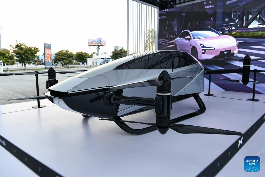 An Xpeng X2 flying car is on display during Chengdu Motor Show 2024 in Chengdu, southwest China's Sichuan Province, Aug. 30, 2024. The Chengdu Motor Show 2024 kicked off here on Friday. Nearly 130 Chinese and foreign car companies made appearance during the motor show, with more than 1,600 vehicles on display. (Xinhua/Tang Wenhao)