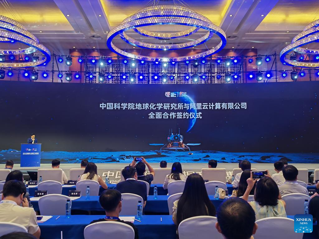 This photo taken on Aug. 29, 2024 shows a scene of the releasing ceremony of the world's first professional, multimodal large language model (LLM) for the field of lunar science in Guiyang, southwest China's Guizhou Province. (Xinhua/Xiang Dingjie)