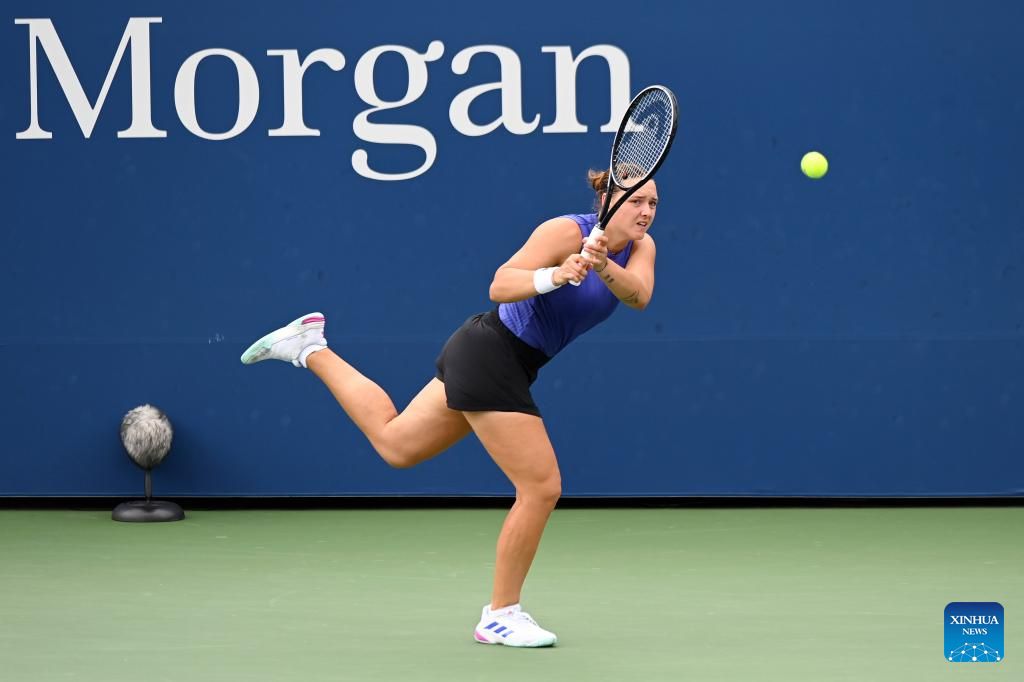 Jule Niemeier of Germany competes during the women's singles third round match between Zheng Qinwen of China and Jule Niemeier of Germany at the 2024 US Open tennis championships in New York, the United States, on Aug. 30, 2024. (Xinhua/Li Rui)