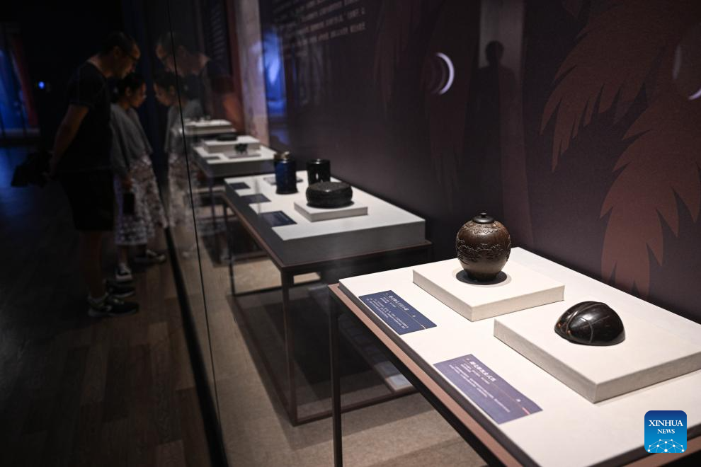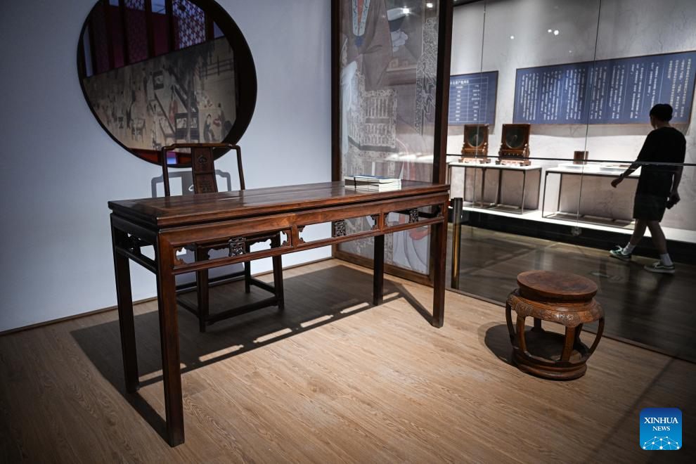 This photo taken on Aug. 31, 2024 shows exhibits on a special exhibition at Hainan Museum in Haikou, south China's Hainan Province. An ongoing exhibition showcasing Hainan's cultural relics collected by the Palace Museum is held at Hainan Museum. A total of 96 exhibits with Hainan characteristics are on display including traditional furniture, ornaments and stationery, etc. (Xinhua/Pu Xiaoxu)