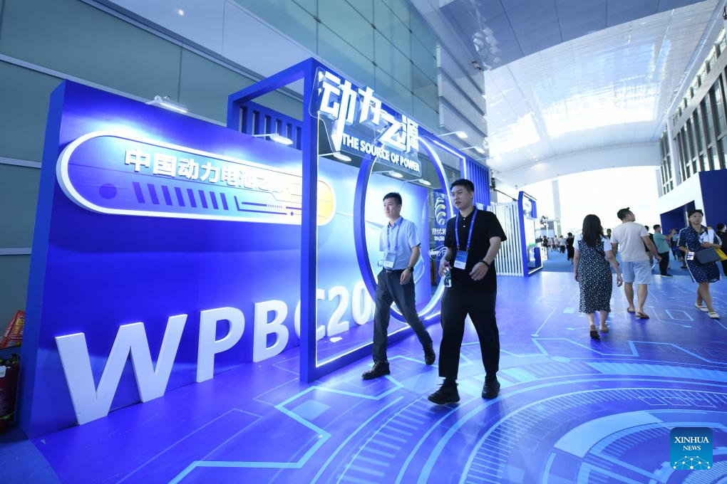 Visitors walk around the venue of the 2024 World Power Battery Conference in Yibin, southwest China's Sichuan Province, Sept. 1, 2024. (Xinhua/Tang Wenhao)