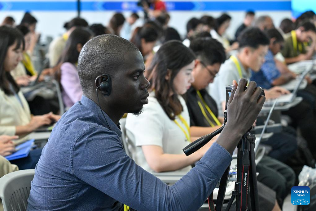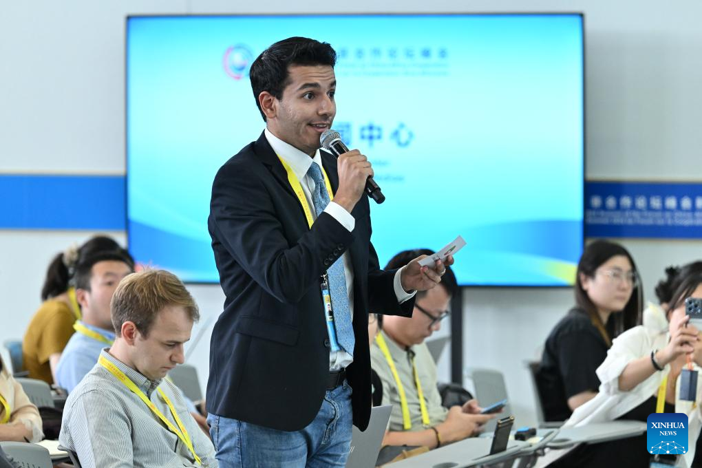 Journalists attend a press briefing of the 2024 Summit of the Forum on China-Africa Cooperation (FOCAC) in Beijing, capital of China, Sept. 2, 2024. (Xinhua/Li Xin)