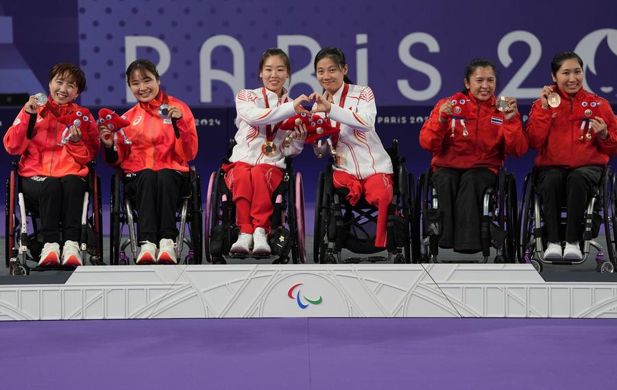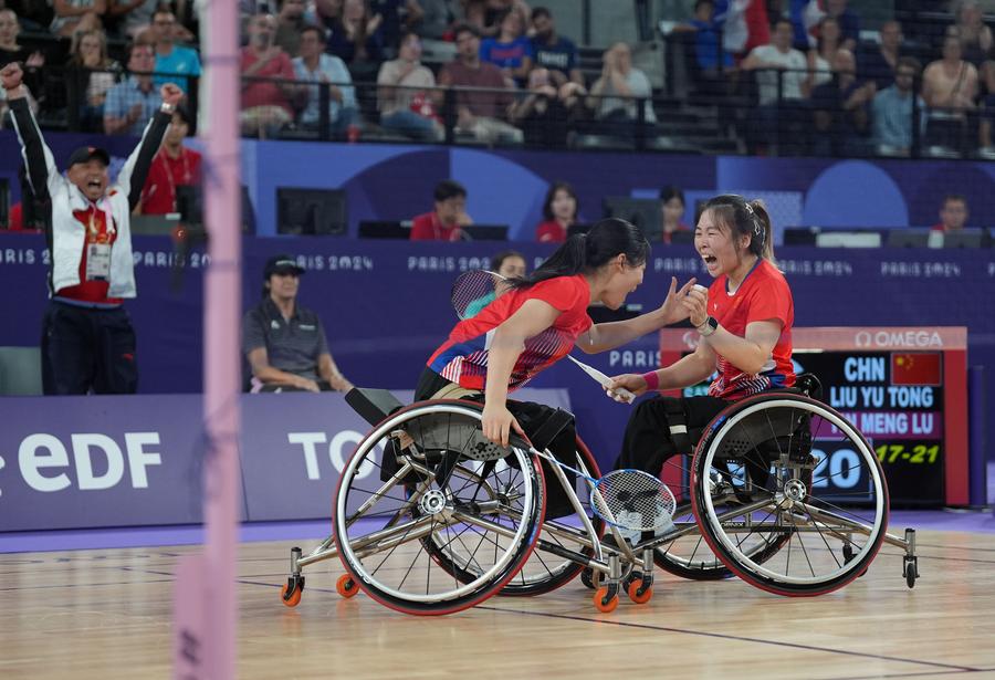 PARIS, Sept. 2 (Xinhua) -- "Every night when I lay in my bed, the same thought echoed in my mind -- I've trained so hard for the Games, and I have to win in Paris," Chinese shuttler Yin Menglu recalled after claiming the gold medal in the women's doubles WH1-WH2 with her partner, the Tokyo Paralympic champion Liu Yutong at the Paris Paralympics on Sunday.