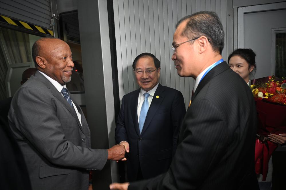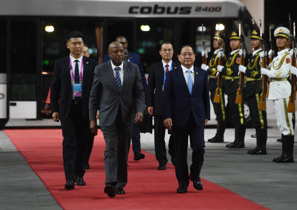 Namibia's President Nangolo Mbumba arrives for the 2024 Summit of the Forum on China-Africa Cooperation (FOCAC) in Beijing, capital of China, Sept. 2, 2024. (Xinhua/Zhang Chenlin)