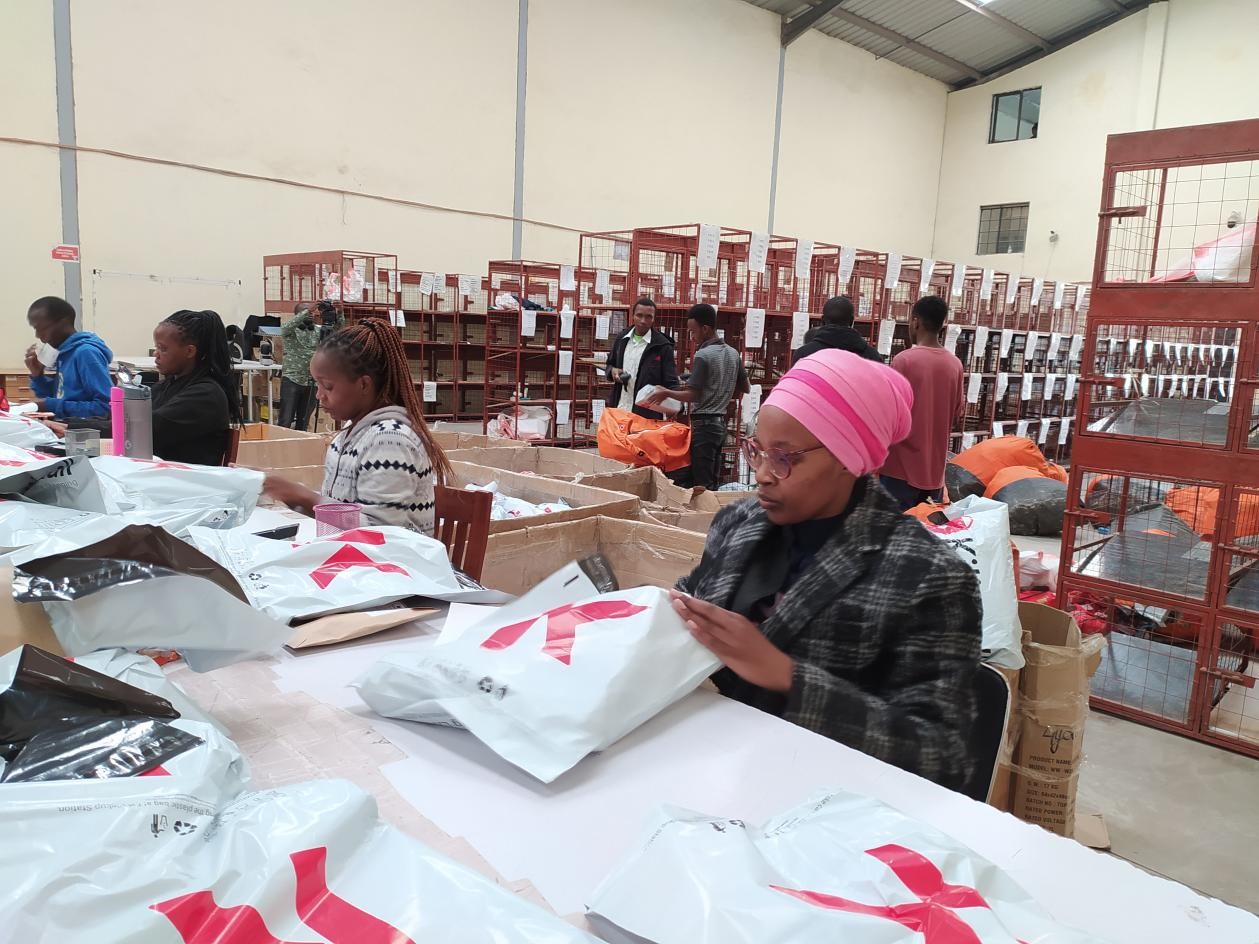 In a logistics center of e-commerce platform Kilimall located on the outskirts of Nairobi, capital of Kenya, there were a wide array of goods in warehouses. Local workers were proficiently counting, packing, and labeling items with barcodes or QR codes.