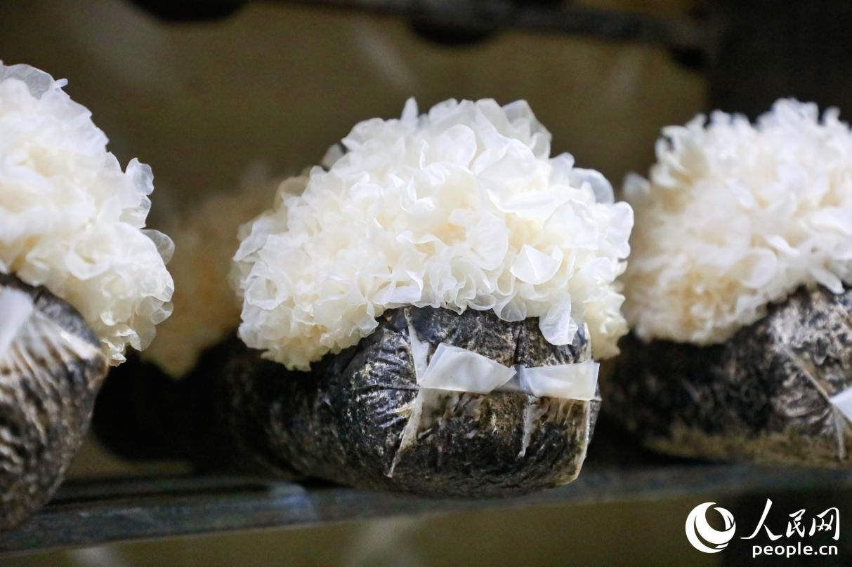 Photo shows tremella mushrooms in a cultivation house in Gutian county, Ningde city, southeast China's Fujian Province. (People's Daily Online/Li Weiyi)