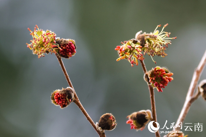 The Parrotia subaequalis blooms for the first time in 2024 at Kunming Botanical Garden in Kunming, southwest China's Yunnan Province. (Photo courtesy of Kunming Botanical Garden)