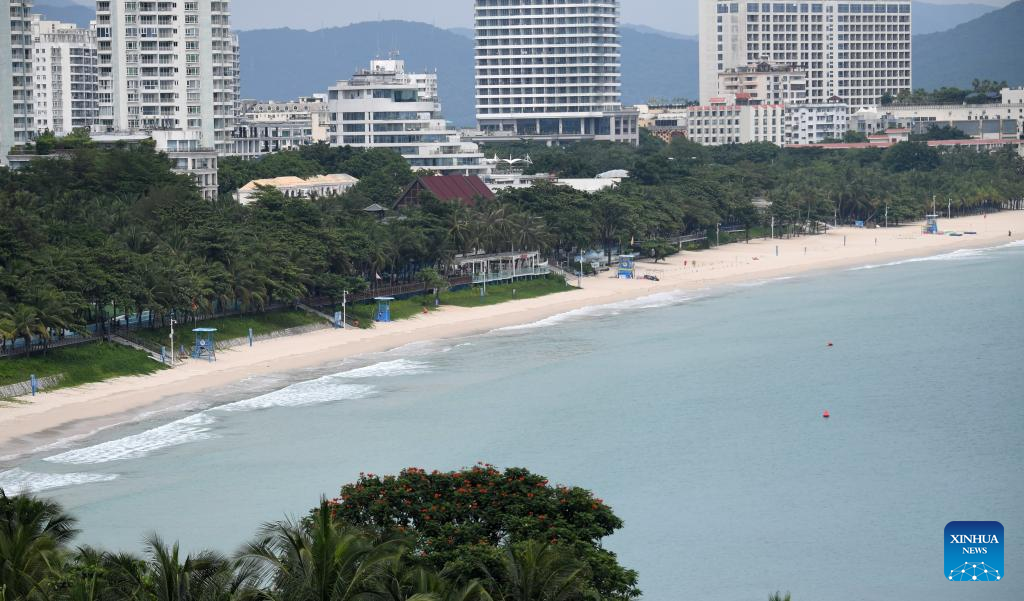 The closed Dadonghai scenic area is seen in Sanya, south China's Hainan Province, Sept. 5, 2024. The State Flood Control and Drought Relief Headquarters raised its emergency response for flood and typhoon prevention from level III to level II in Guangdong and Hainan provinces at 3 p.m. Thursday, as typhoon Yagi approaches.