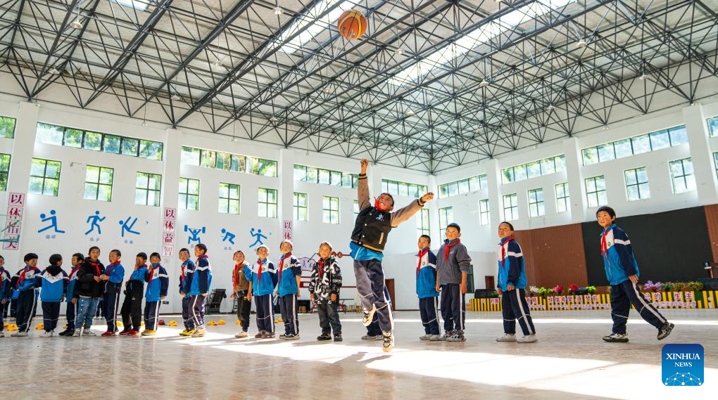 Students have a PE class at the Central Primary School in Nyangpo Township, Gongbo'Gyamda County, Nyingchi City, southwest China's Xizang Autonomous Region, Sept. 4, 2024.(Xinhua/Liu Zhoupeng)