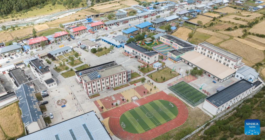 An aerial drone photo taken on Sept. 4, 2024 shows the Central Primary School in Nyangpo Township, Gongbo'Gyamda County, Nyingchi City, southwest China's Xizang Autonomous Region.(Xinhua/Jigme Dorje)