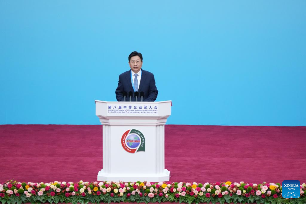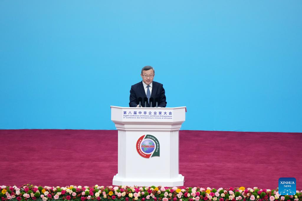 China International Trade Representative and Vice Minister of Commerce Wang Shouwen gives a speech at the opening ceremony of the eighth Conference of Chinese and African Entrepreneurs at the China National Convention Center in Beijing, capital of China, Sept. 6, 2024. (Xinhua/Chen Yehua)