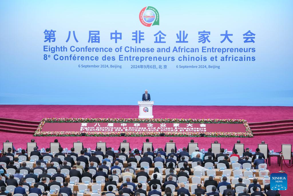 The opening ceremony of the eighth Conference of Chinese and African Entrepreneurs is held at the China National Convention Center in Beijing, capital of China, Sept. 6, 2024. (Xinhua/Chen Yehua)
