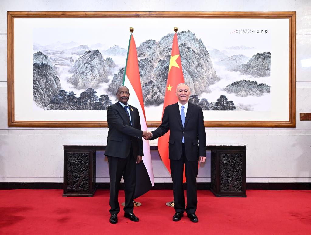 Al-Burhan expressed appreciation to China for supporting Sudan's efforts in safeguarding national sovereignty and territorial integrity and in restoring peace and stability, saying he will promote Sudan-China cooperation to achieve new results.