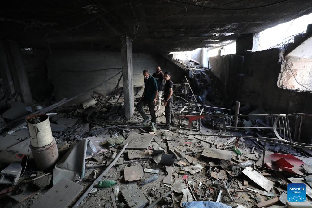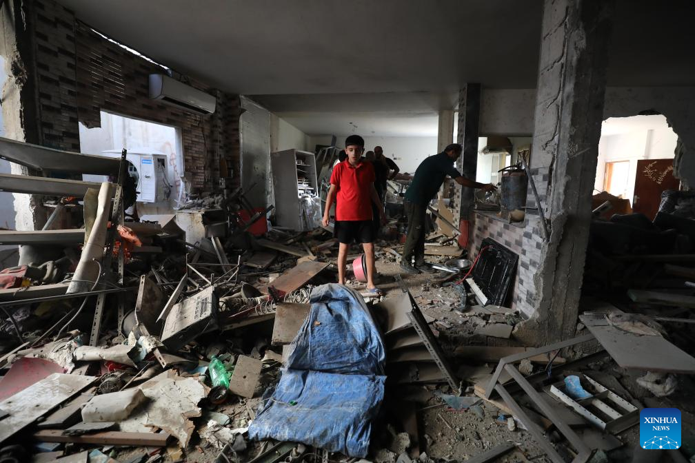 People are seen inside a house damaged in an Israeli military operation in the northern West Bank city of Jenin, on Sept. 6, 2024. The Israeli army withdrew from the West Bank city of Jenin on Friday after a 10-day operation that left 21 people dead, according to Palestinian and Israeli sources. (Photo by Nidal Eshtayeh/Xinhua)