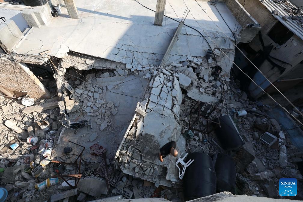 A man stands on the roof of a house damaged in an Israeli military operation in the northern West Bank city of Jenin, on Sept. 6, 2024. The Israeli army withdrew from the West Bank city of Jenin on Friday after a 10-day operation that left 21 people dead, according to Palestinian and Israeli sources. (Photo by Nidal Eshtayeh/Xinhua)