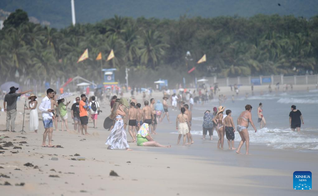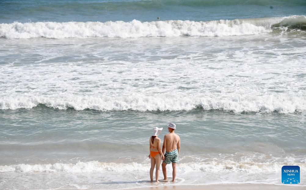 Tourists enjoy their leisure time at the beach at the Dadonghai scenic area in Sanya, south China's Hainan Province, Sept. 8, 2024. All tourism, cultural and sports venues in Sanya, a tourist city in south China's island province of Hainan, reopened to the public on Sunday as the influence of Super Typhoon Yagi continues to wane, local authorities said. (Xinhua/Zhao Yingquan)