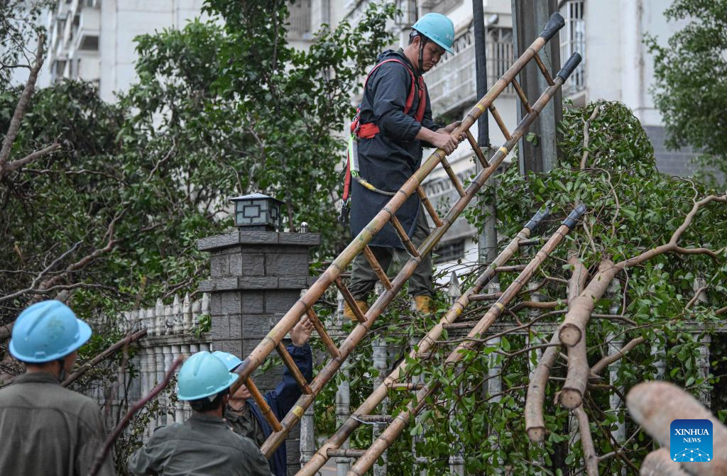 Emergency response workers fix power supply facilities in S China after Super Typhoon Yagi