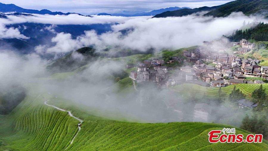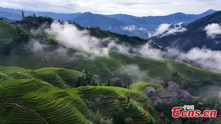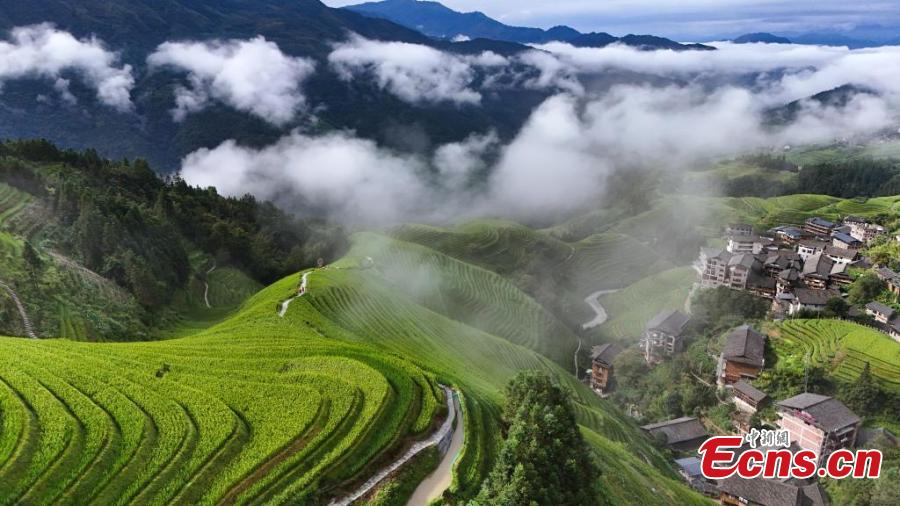 Landscape of the cloud-shrouded terraced fields after a rain forms a poetic image in Longsheng County of Guilin, south China's Guangxi Zhuang Autonomous Region, Sept. 9, 2024. (Photo: China News Service/Pan Zhiyang)
