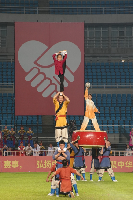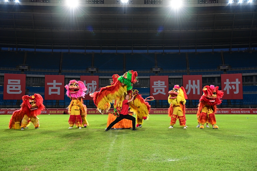 During halftime, representatives from the Shaolin Temple Tagou Martial Arts School in Dengfeng city, Henan Province, captivated the spectators with a mesmerizing show that blended Shaolin Kung Fu with football, and performers from Guizhou wowed the crowd with the Dong ethnic group's Grand Song.