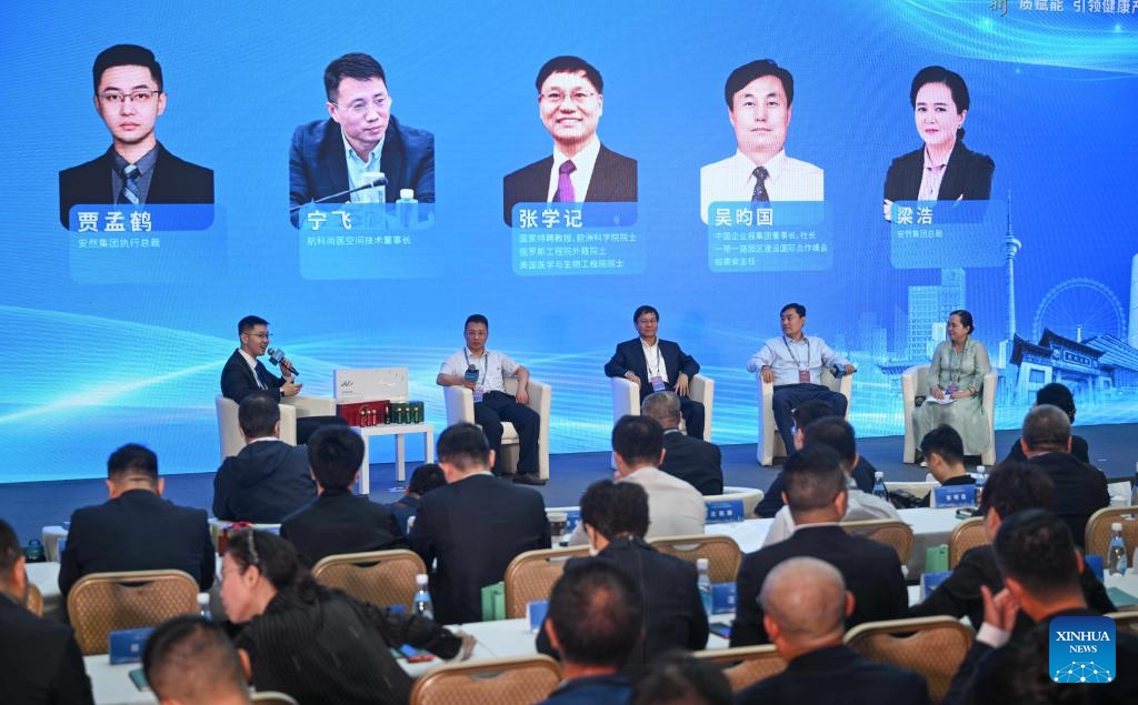 Guests attend a panel discussion during the 2024 China Top 500 Enterprises Summit in north China's Tianjin, Sept. 10, 2024. The two-day 2024 China Top 500 Enterprises Summit kicked off here Tuesday, attracting more than 2,000 entrepreneurs, experts, scholars and industry-related guests. (Xinhua/Sun Fanyue)