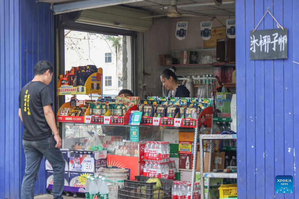 A citizen shops at a convenience store in Haikou, south China's Hainan Province, Sept. 11, 2024. Hainan has witnessed its production gradually resumed after Super Typhoon Yagi, the 11th typhoon of the year, made landfall in Hainan on Friday and brought damage across the island. (Xinhua/Zhang Liyun)
