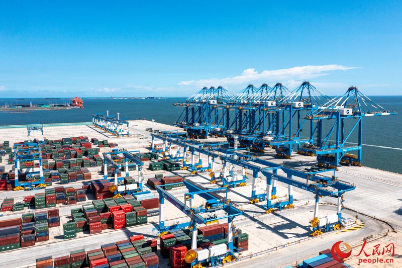 Photo shows an automated container terminal at Qinzhou port area of the Beibu Gulf Port, south China's Guangxi Zhuang Autonomous Region. (People's Daily Online/Yan Lizheng)