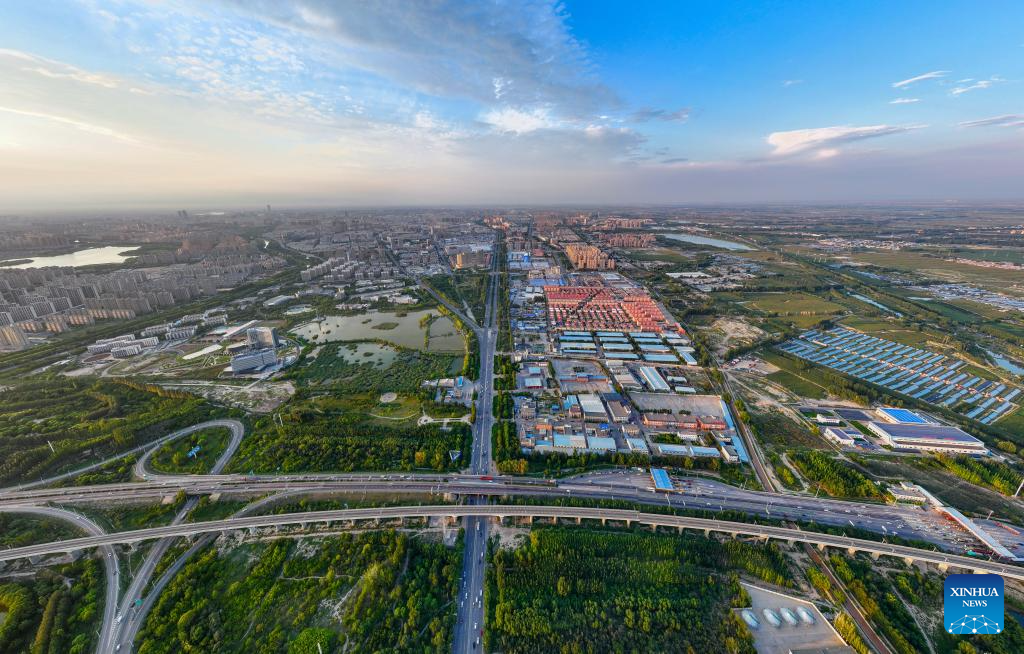 An aerial drone photo taken on June 5, 2024 shows a view of the Diannong River in Yinchuan, northwest China's Ningxia Hui Autonomous Region. (Xinhua/Wang Peng)