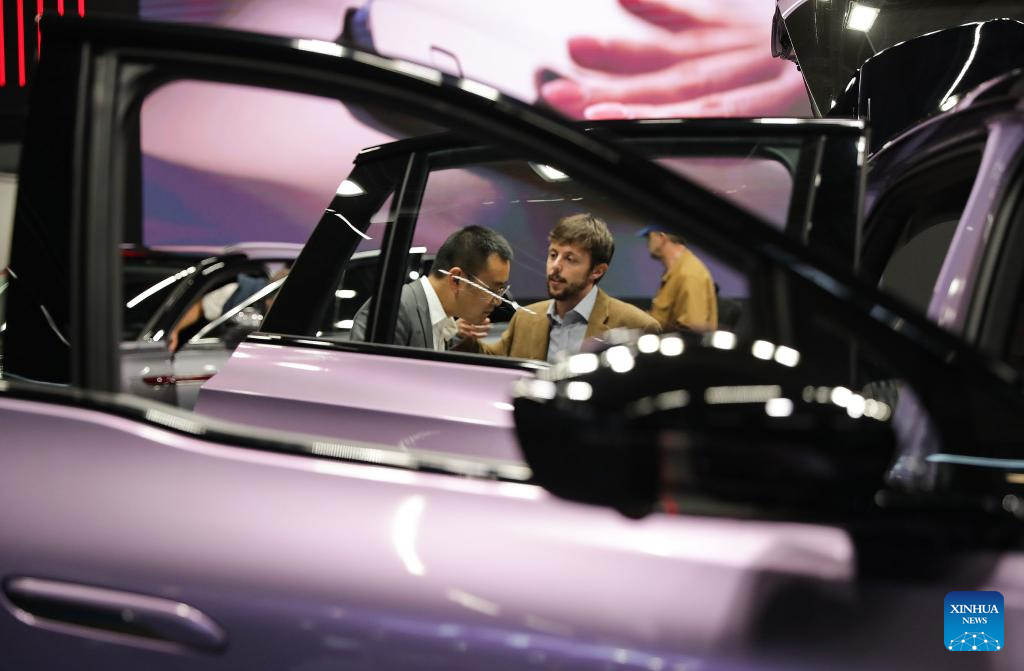 An Electric Vehicle Expo (EVA Expo), hosted by the Automotive Sub-council of China Council for the Promotion of International Trade (CCPIT Auto), is offering trade visitors an opportunity to connect with Chinese auto manufacturers and explore potential partnership opportunities during the Automechanika fair. (Xinhua/Zhang Fan)