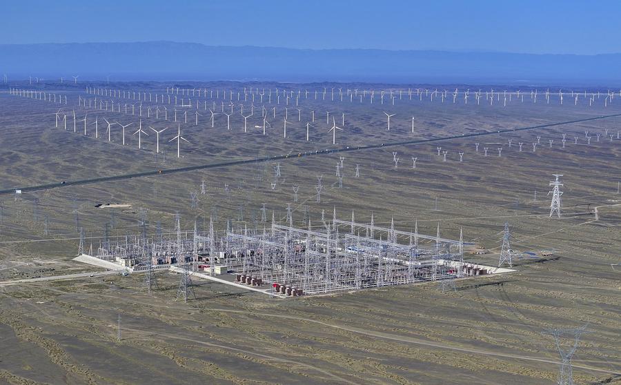 HAMI, Sept. 12 (Xinhua) -- Rich in wind energy resources, Hami City of northwest China's Xinjiang Uygur Autonomous Region is one of the country's major wind power bases. To make the most out of its resource advantages, the city has accelerated the development and construction of wind power projects in recent years to promote green energy transformation. At the same time, many domestic wind power enterprises have also been introduced here to build wind power equipment manufacturing industry chains to promote high-quality economic development.