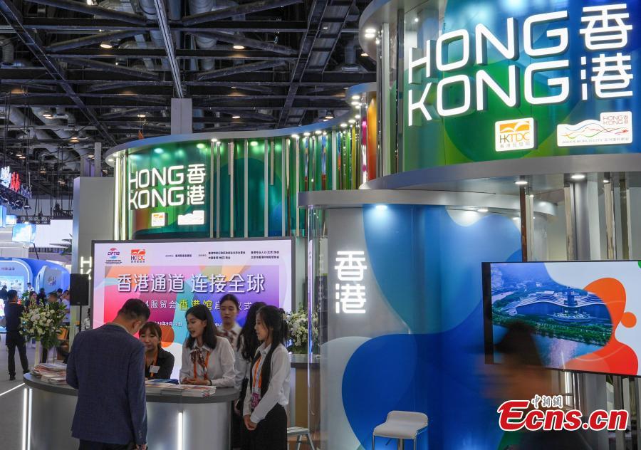 People visit the booth of the Hong Kong Special Administrative Region during the 2024 China International Fair for Trade in Services (CIFTIS) at the China National Convention Center in Beijing, Sept. 12, 2024. (Photo: China News Service/Zhang Xiangyi)
