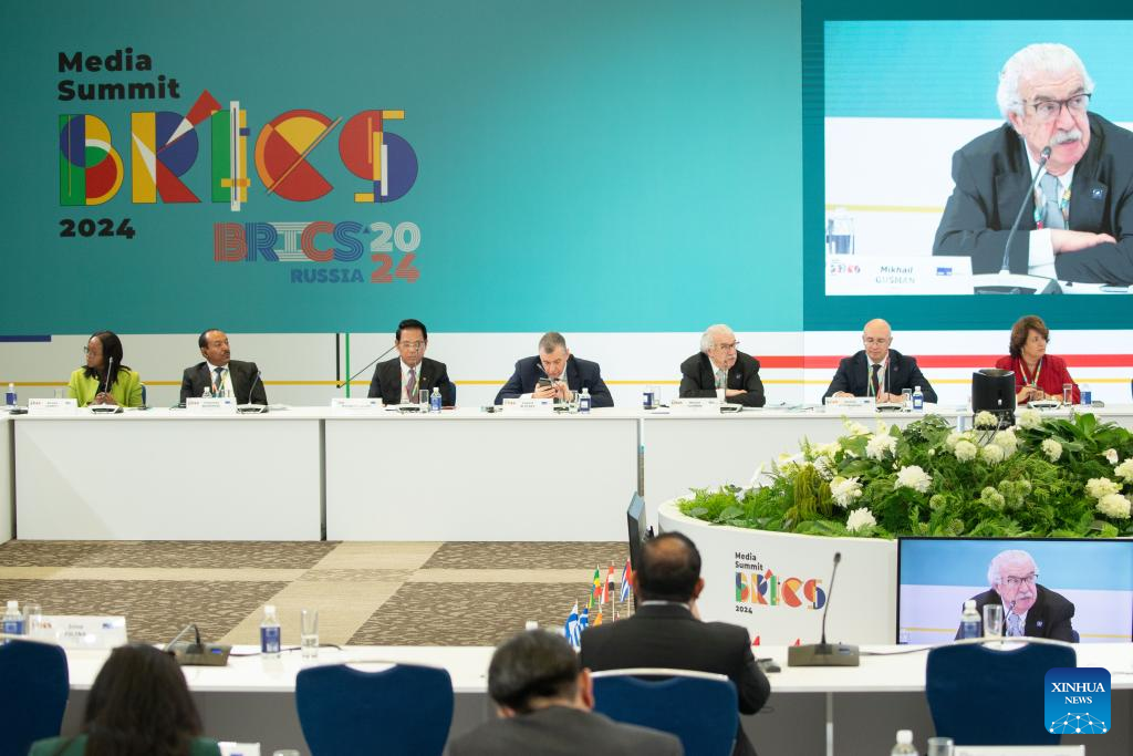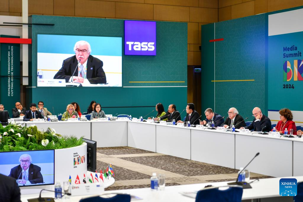 MOSCOW, Sept. 14 (Xinhua) -- Over 60 BRICS media leaders from more than 40 countries joined the BRICS Media Summit opened here on Saturday, discussing the role of BRICS media in promoting a multipolar world.
