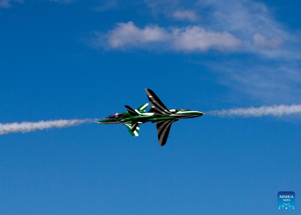 Aircraft from Saudi Arabia perform during an air show at the Tanagra Air Base, some 70 kilometers north of Athens, Greece, Sept. 15, 2024.