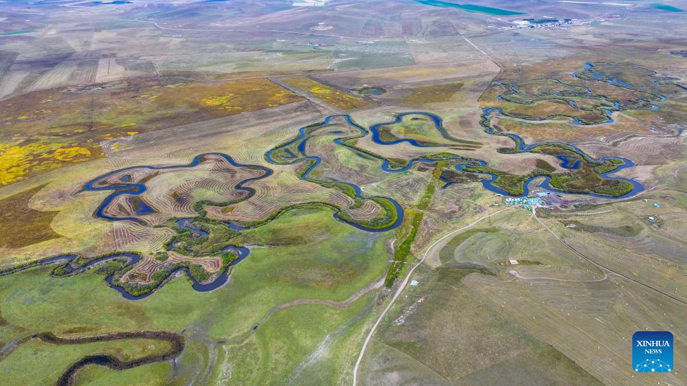 An aerial drone photo taken on Sept. 17, 2024 shows the scenery of Ulgai Grassland in Xilingol, north China's Inner Mongolia Autonomous Region. (Xinhua/Peng Yuan)
