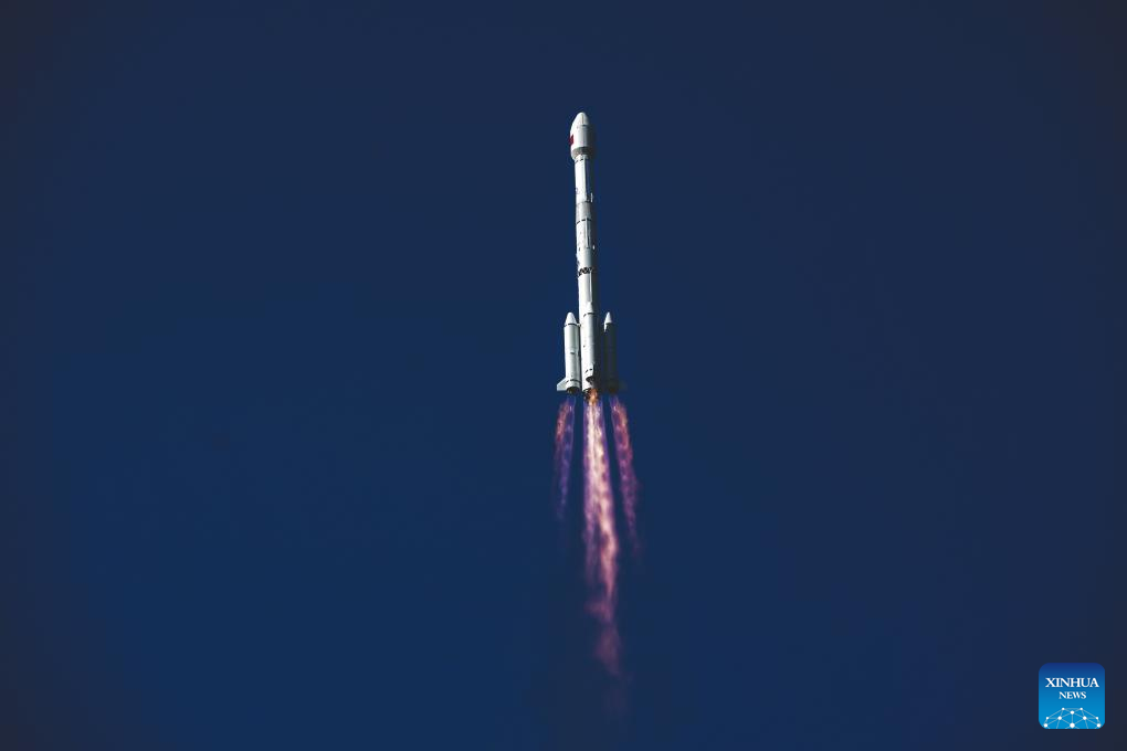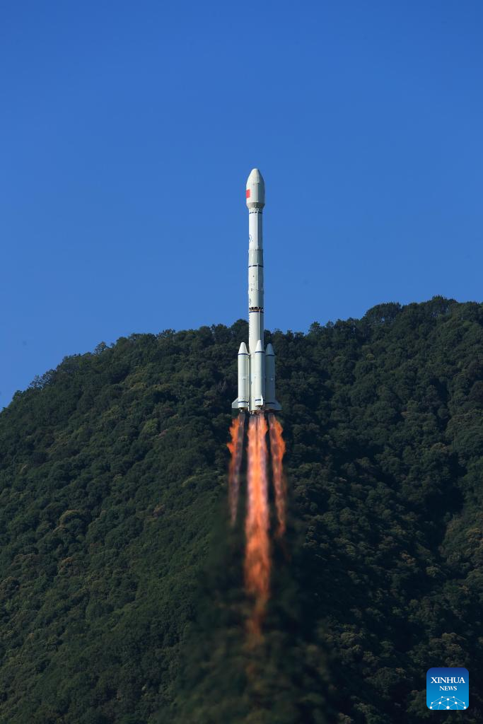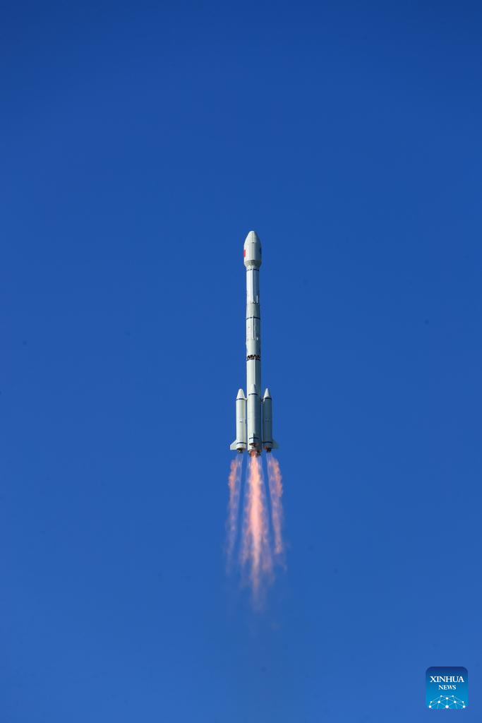 The 59th and 60th satellites of the BeiDou system are launched at 9:14 a.m. (Beijing Time) by a Long March-3B carrier rocket and the Yuanzheng-1 (Expedition-1) upper stage attached to the carrier rocket from the Xichang Satellite Launch Center in southwest China's Sichuan Province, Sept. 19, 2024. (Photo by Yang Zhiyuan/Xinhua)