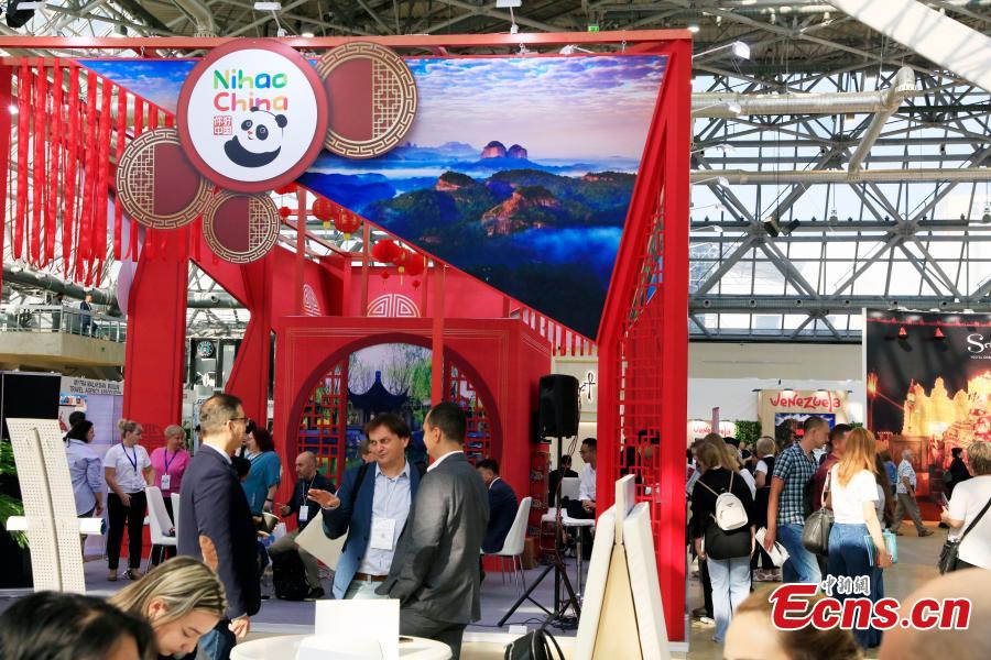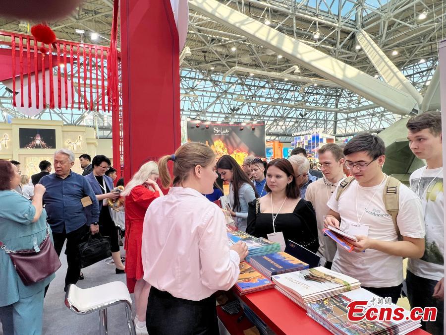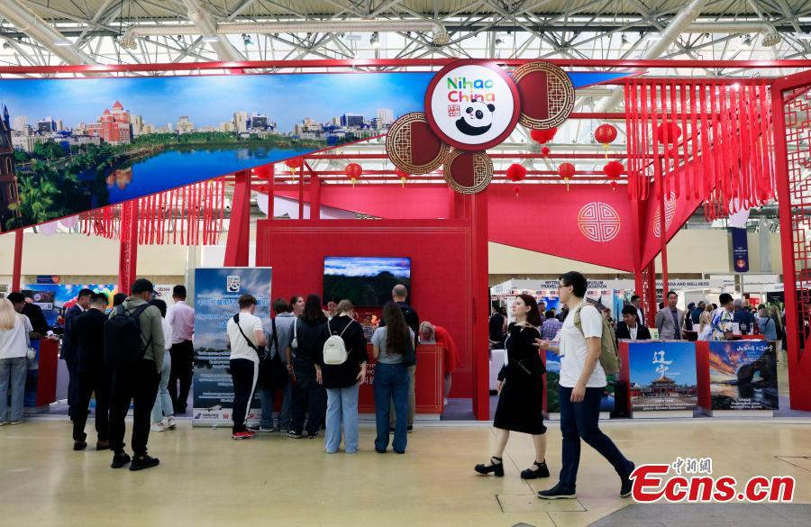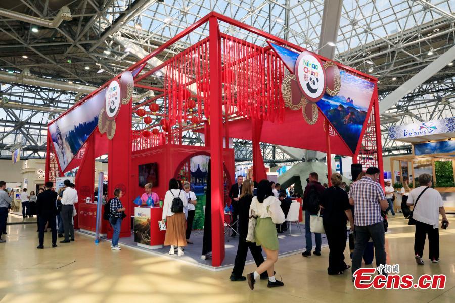 People visit the China booth during the 30th international trade fair for travel & tourism in Moscow, Russia, Sept 17, 2024. (Photo: China News Service/Tian Bing)