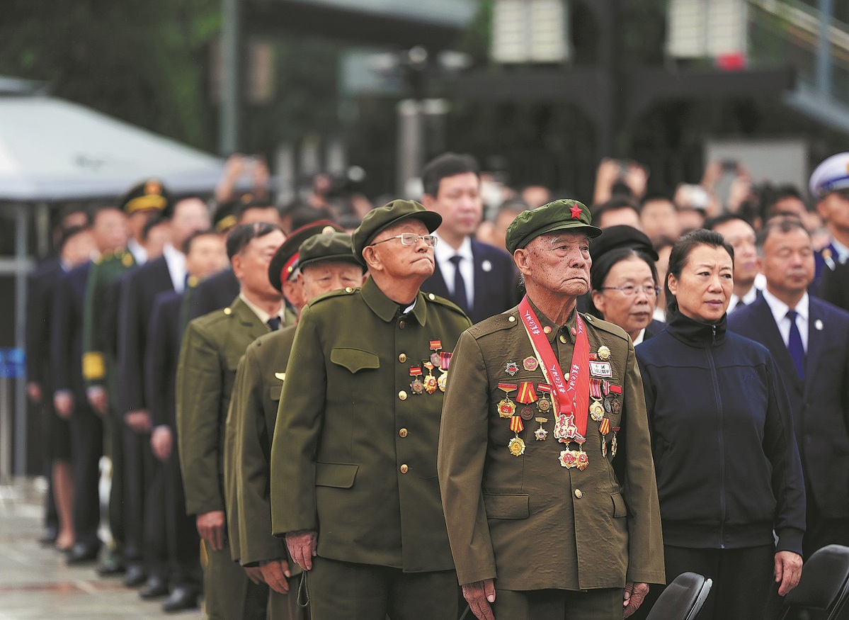 Veterans, officials, and local residents attend a bell-tolling and siren-sounding ceremony on Wednesday at the 9.18 Historical Museum in Shenyang, Liaoning province, to commemorate the September 18 Incident in 1931. The ceremony was held to mark the 93rd anniversary of the incident, in which Japanese troops began the bloody invasion of China. (LI GANG/XINHUA)
