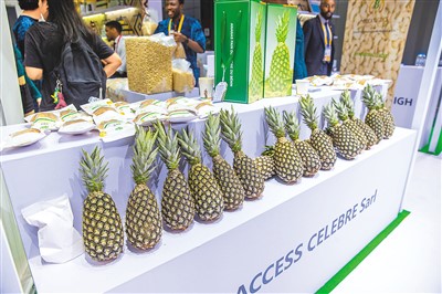 Pineapples from Benin make their debut during the sixth China International Import Expo in Shanghai. (People's Daily Overseas Edition/Zhang Wujun)