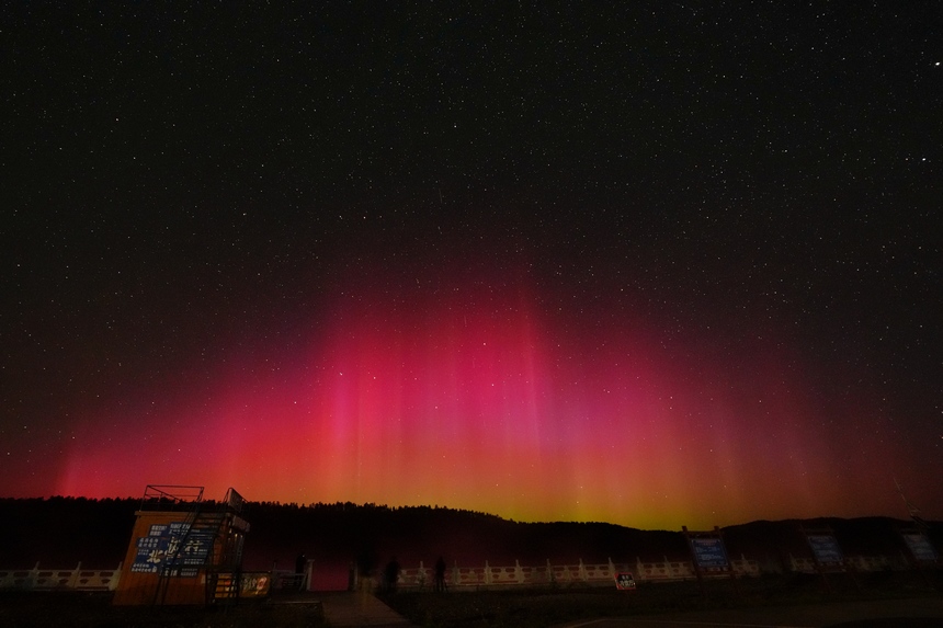 A spectacular display of red and green aurora lit up the pre-dawn sky on Sept. 13 in Mohe, China's northernmost city.