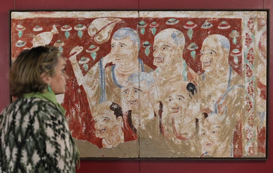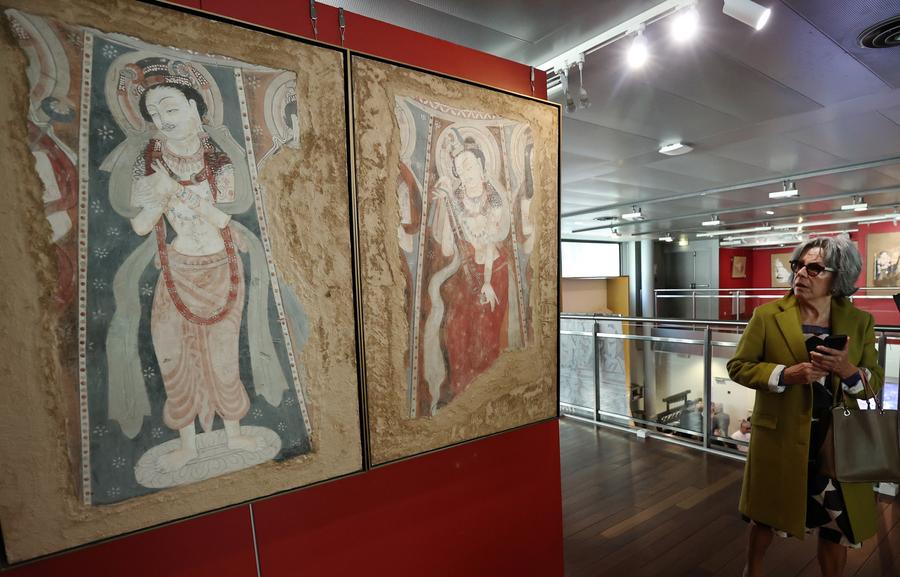 PARIS, Sept. 20 (Xinhua) -- The China Cultural Center in Paris is showcasing Silk Road Danqing, an exhibition of copies of cave temple mural paintings along the ancient Silk Road.