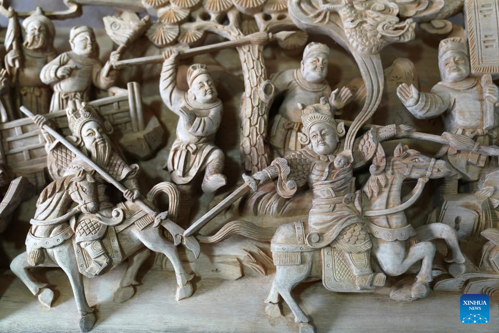 Wood carving works are pictured in Wangkou Village of Wuyuan County, east China's Jiangxi Province, Sept. 20, 2024. (Xinhua/Wan Xiang)